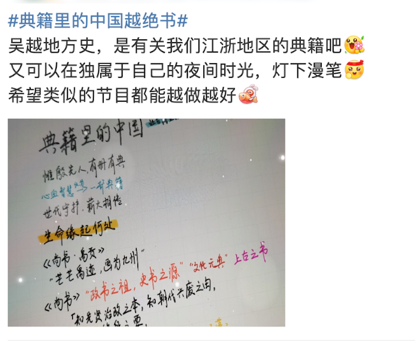 大學時讀的這部書,令總臺臺長記憶深刻。在提議策劃推出《典籍里的中國》第二季時,臺長建議關注《越絕書》這個選題。古越人絕地求生、奮斗不息的精神,值得今人傳承弘揚!