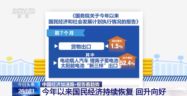 報(bào)告指出,前7個(gè)月貨物出口同比增長1.5%,其中電動(dòng)載人汽車、鋰離子蓄電池、太陽能電池“新三樣”出口合計(jì)增長52.4%。知識(shí)密集型服務(wù)貿(mào)易較快增長,旅行服務(wù)貿(mào)易明顯恢復(fù),上半年服務(wù)進(jìn)出口同比增長8.5%。推動(dòng)外資標(biāo)志性項(xiàng)目落地實(shí)施,外貿(mào)外資平穩(wěn)發(fā)展。