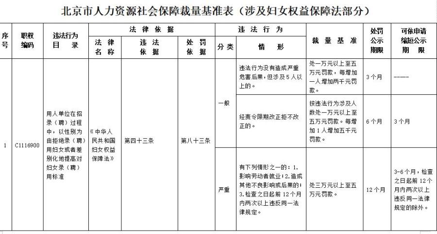 中新網(wǎng)2月3日電 北京市人力資源和社會保障局近日發(fā)布關于印發(fā)《北京市人力資源社會保障行政處罰裁量基準表(涉及婦女權益保障法部分)》的通知,其中明確,用人單位在招錄(聘)過程中,以性別為由拒絕錄(聘)用婦女或者差別化地提高對婦女錄(聘)用標準,或因結(jié)婚、懷孕、產(chǎn)假、哺乳等,降低女職工的工資和福利待遇等行為,最高可處五萬元罰款。(中新財經(jīng))