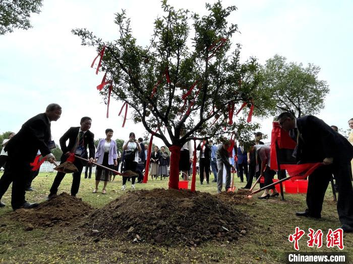 9月13日,第五屆海峽兩岸姊妹湖產(chǎn)業(yè)協(xié)作年會(huì)在武漢啟幕,8個(gè)湖泊代表共植“姊妹樹”?!≈行律缬浾?馬芙蓉 攝