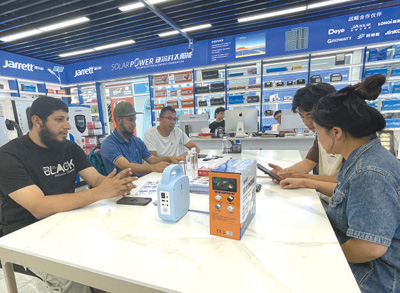 最近,埃馬紐埃爾又開始關注新能源產(chǎn)品?!翱溌∫恍┑胤酱嬖陔娏Χ倘薄⒐╇姴环€(wěn)的問題,很多當?shù)厝讼M夷茉谥袊业胶线m的產(chǎn)品?!睘榇耍涯繕嗣闇柿肆x烏國際商貿(mào)城的新能源產(chǎn)品市場,尋找到一些適合喀麥隆的光伏設備?!爸袊男履茉串a(chǎn)品性能可靠、性價比高,產(chǎn)品品類覆蓋領域廣泛。”埃馬紐埃爾表示,大到醫(yī)療機構(gòu),小到禽畜養(yǎng)殖場,中國光伏設備供應的電力有助于滿足當?shù)孛癖娚a(chǎn)生活的用電需求。