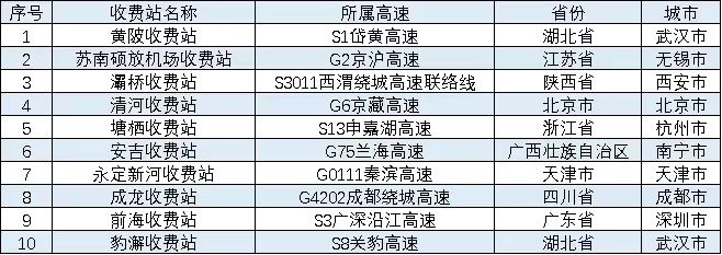 清明節(jié)期間,全國高速公路預計易發(fā)生擁堵緩行的收費站,如表2所示。