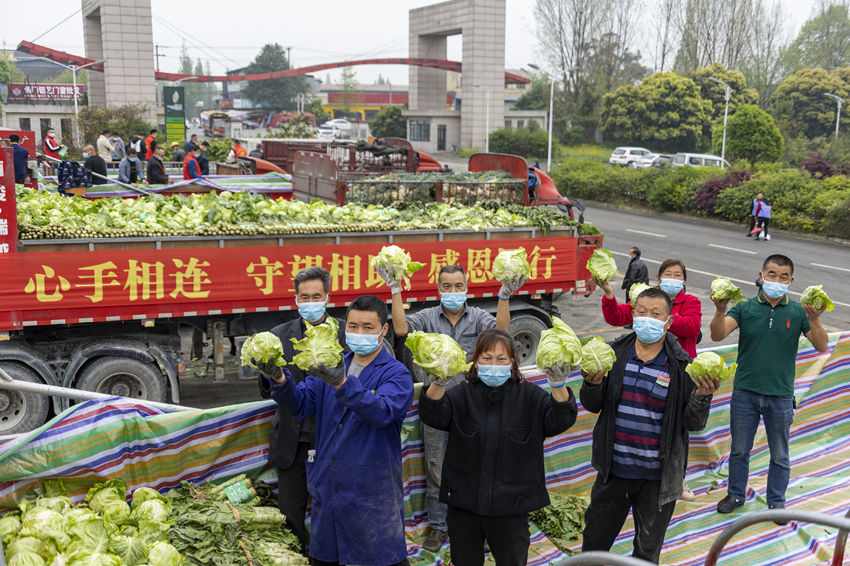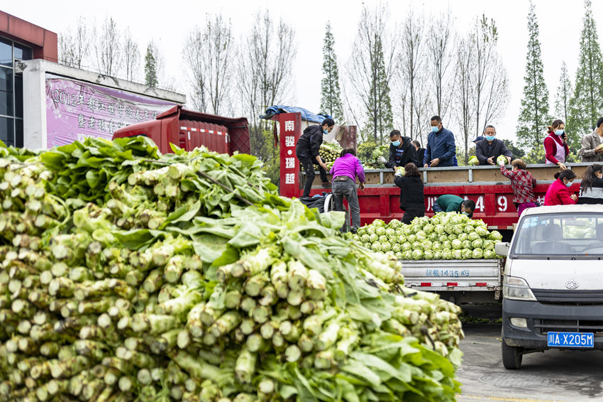 散發(fā)著清香氣息的萵筍,品質(zhì)一流的蓮花白、土豆、生菜、蘿卜,還有都江堰特產(chǎn)大蔥以及時(shí)下當(dāng)?shù)刈钚迈r的春筍等,經(jīng)過嚴(yán)格的農(nóng)產(chǎn)品安全檢測(cè)后,被裝上了愛心運(yùn)輸車輛。