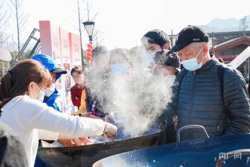 市民現(xiàn)場品嘗熱氣騰騰的大鍋燉魚(央廣網(wǎng)發(fā) 活動主辦方供圖)