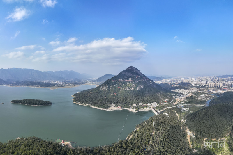 冬日暖陽(yáng)下,綠意盎然、湖水環(huán)抱的石竹山(央廣網(wǎng)發(fā) 謝貴明 攝)