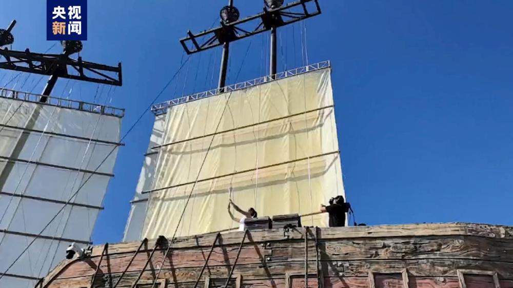 14名圣火少女表演南珠賦舞蹈,護(hù)送采火人至采火點,采火人采集火種從漢船走下來,14名圣火少女以道具形式呈現(xiàn)南珠形狀,迎接圣火,采火人穿過舞臺走上主席臺圣火盆前,展示采火棒。