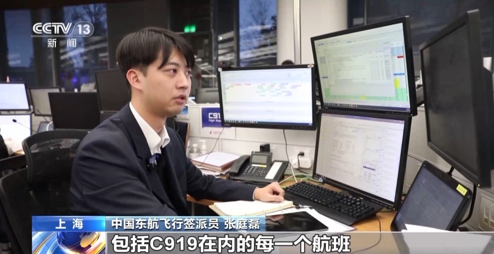 中國(guó)東航飛行簽派員 張庭磊:安全是我們的第一要求。簽派員也叫做“地面飛行員”,包括C919大飛機(jī)在內(nèi)的每一個(gè)航班,我們都要參與制定和申請(qǐng)飛行計(jì)劃。