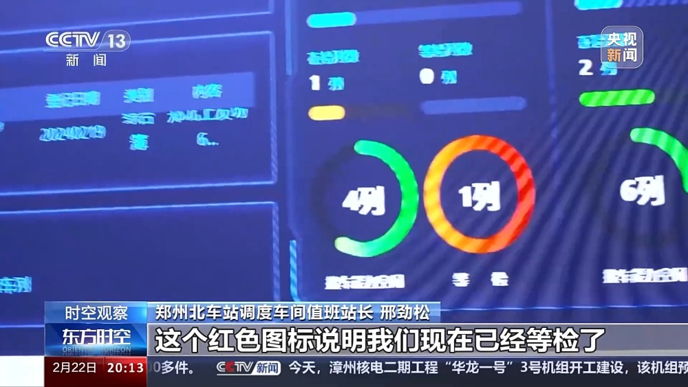 鄭州北車(chē)站調(diào)度車(chē)間值班站長(zhǎng) 邢勁松:三種圖標(biāo),你看黃色圖標(biāo)說(shuō)明我們檢車(chē)能力不太緊張,然后綠色圖標(biāo)說(shuō)明我們接車(chē)能力空閑,紅色圖標(biāo)說(shuō)明我們現(xiàn)在已經(jīng)等檢了。今天我們白班基本上開(kāi)了三列化肥煤車(chē),通過(guò)大數(shù)據(jù)服務(wù)我們的春耕生產(chǎn)。