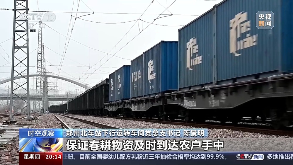 總臺(tái)央視記者 蔣樹(shù)林:這里是鄭州北車(chē)站,也是全國(guó)作業(yè)量最大的編組站,大家看我眼前這個(gè)車(chē)?yán)锩嫜b的就是當(dāng)下春耕所急需用的化肥原料,作業(yè)還在加班加點(diǎn)地往前推進(jìn)。