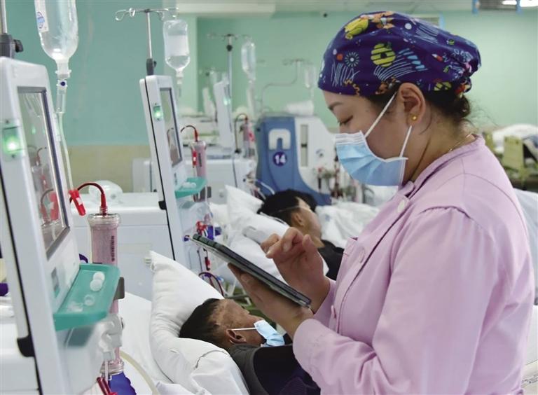 護(hù)士在調(diào)整透析參數(shù)。圖由自治區(qū)人民醫(yī)院提供