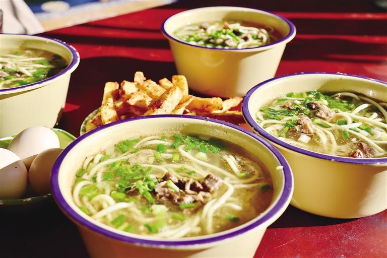 在西藏,人們總能將簡(jiǎn)單的食材做出獨(dú)一無二的“西藏味道”。一壺甜茶,一碗藏面,一份炸土豆或肉餅,便是這里最標(biāo)準(zhǔn)的早餐套餐。清水、紅茶茶葉、甜奶粉或牦牛奶,只需簡(jiǎn)單的食材,便能制作出茶香濃郁、奶味醇厚的甜茶。在略帶寒意的初春,喝上一口,整個(gè)身子都暖了起來。此時(shí)搭配一碗筋道的藏面,簡(jiǎn)單又滿足。