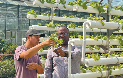 中國(guó)援多米尼克農(nóng)業(yè)技術(shù)合作項(xiàng)目始于2005年,目前已開(kāi)展至第八期。項(xiàng)目引進(jìn)了多個(gè)高附加值農(nóng)作物品種,促進(jìn)了多米尼克農(nóng)業(yè)產(chǎn)業(yè)升級(jí)。圖為中多兩國(guó)農(nóng)業(yè)專家在觀察水培系統(tǒng)種苗生長(zhǎng)情況。