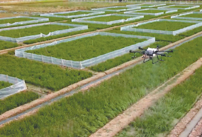 現(xiàn)代化農(nóng)機(jī)設(shè)備在農(nóng)業(yè)生產(chǎn)過(guò)程中的運(yùn)用,極大提高了農(nóng)業(yè)生產(chǎn)效率。圖為在印度尼西亞西爪哇省卡拉旺縣的一處水稻試驗(yàn)田里,中國(guó)生產(chǎn)的農(nóng)用無(wú)人機(jī)進(jìn)行殺蟲(chóng)作業(yè)。