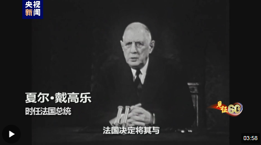 時(shí)任法國(guó)總統(tǒng) 夏爾·戴高樂(lè):“法蘭西共和國(guó)決定將其與中華人民共和國(guó)的關(guān)系提升到正常的外交關(guān)系層面?!?/p>