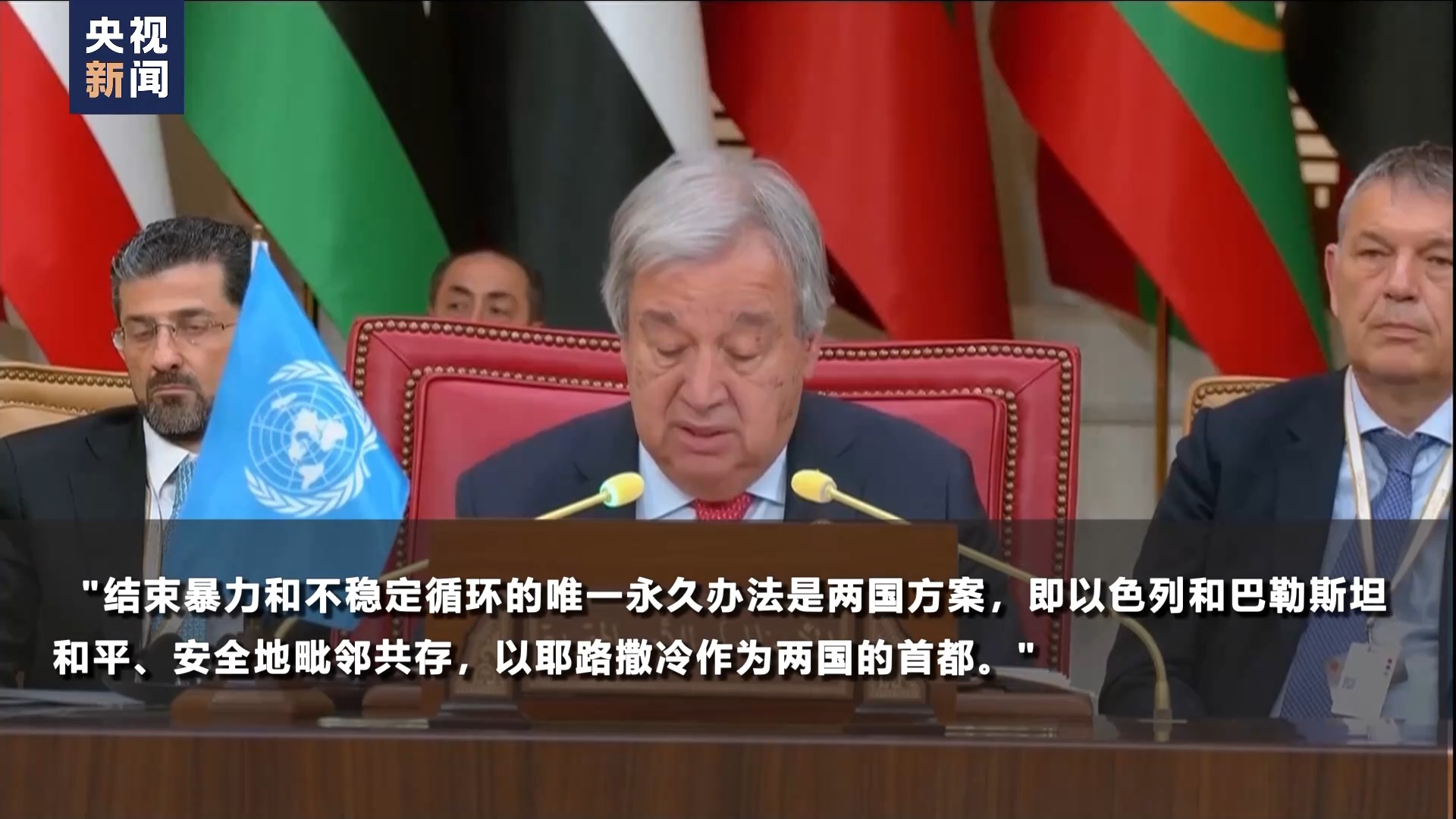 “結(jié)束暴力和不穩(wěn)定循環(huán)的唯一永久辦法是兩國方案,即以色列和巴勒斯坦和平、安全地毗鄰共存,以耶路撒冷作為兩國的首都?!?/p>