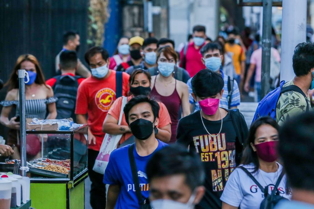 2022年1月17日,在菲律賓奎松城,人們走向公交車站。新華社發(fā)(烏馬利攝)
