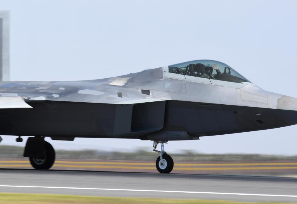 2019年2月28日,在澳大利亞墨爾本,一架美軍F-22戰(zhàn)機準(zhǔn)備在澳大利亞國際航空展期間進行飛行表演。新華社記者白雪飛攝