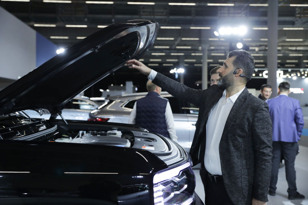 9月11日,人們在德國法蘭克福國際汽車零配件及售后服務(wù)展覽會上參觀比亞迪展臺。 新華社記者張帆攝
