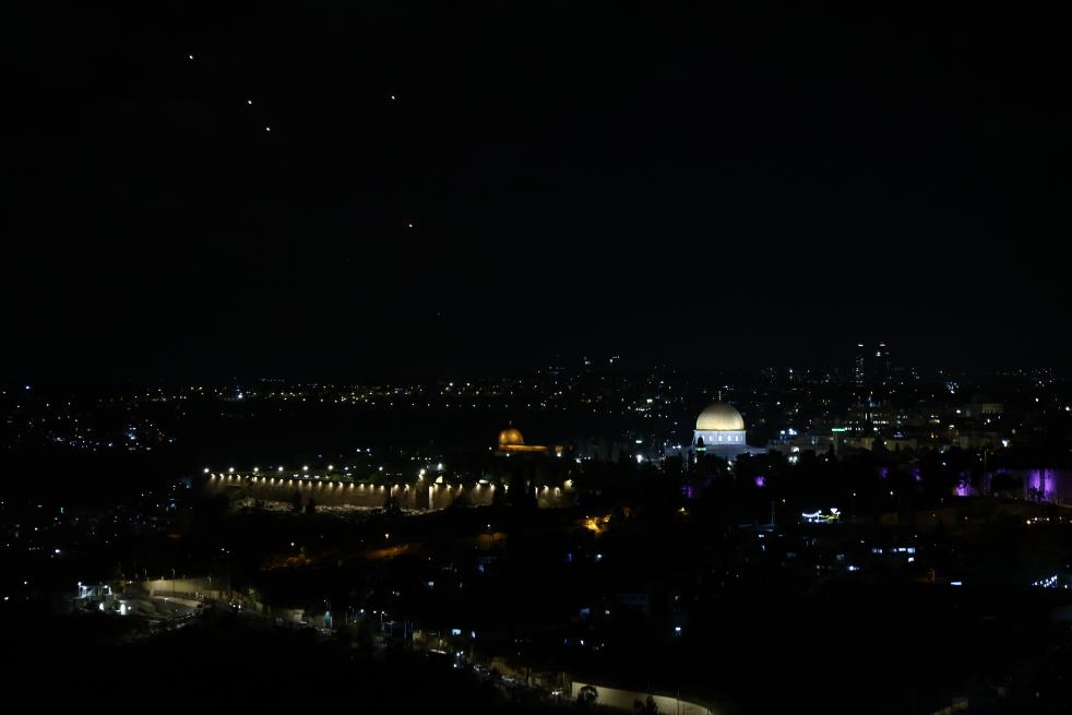 10月1日,伊朗發(fā)射的導彈從耶路撒冷上空飛過。新華社發(fā)(賈馬爾·阿瓦德攝)