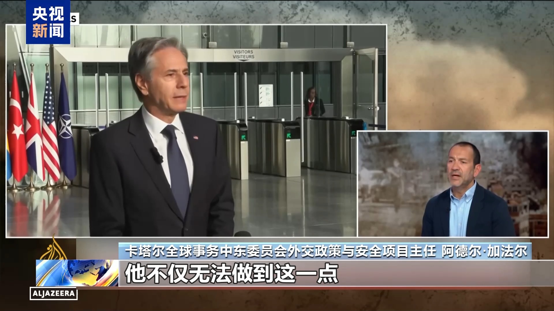 卡塔爾全球事務(wù)中東委員會(huì)外交政策與安全項(xiàng)目主任 阿德?tīng)枴ぜ臃?/strong>:過(guò)去一年多布林肯已經(jīng)去了中東至少11次,和中東國(guó)家領(lǐng)導(dǎo)人會(huì)面,他試圖推動(dòng)以色列結(jié)束戰(zhàn)爭(zhēng),但到目前為止,他不僅無(wú)法做到這一點(diǎn),而且美國(guó)還在外交政策上偏袒以色列,不斷提供武器和資金支持。