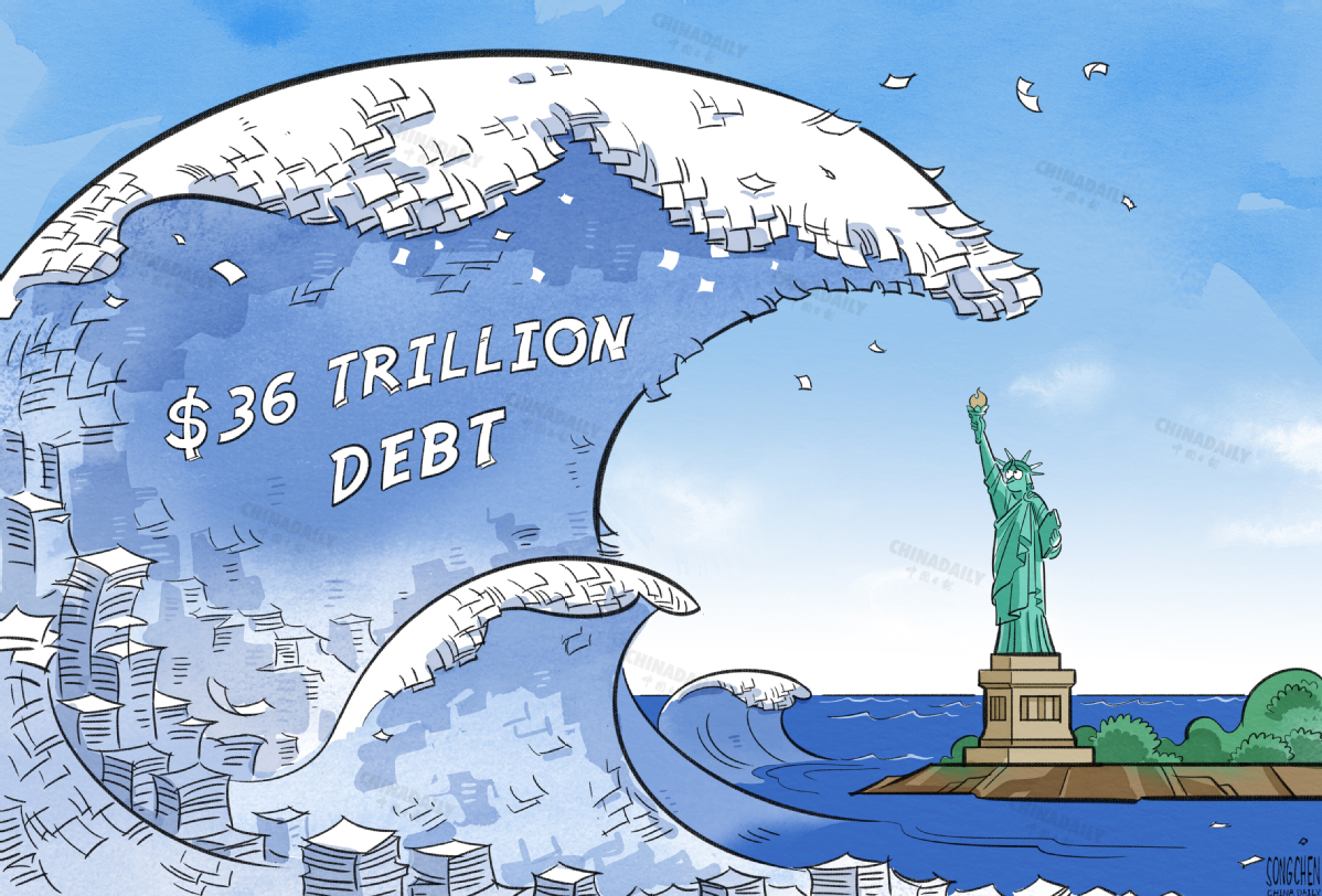 美國國債總額已突破36萬億美元,達(dá)到創(chuàng)紀(jì)錄的新高。(作者:中國日報 宋晨)