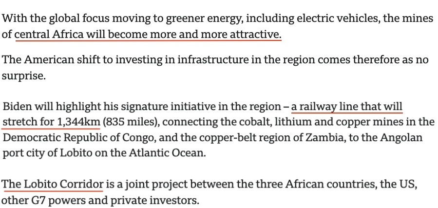 英國(guó)廣播公司報(bào)道稱,拜登此次非洲之行的重點(diǎn)是“洛比托走廊”項(xiàng)目。