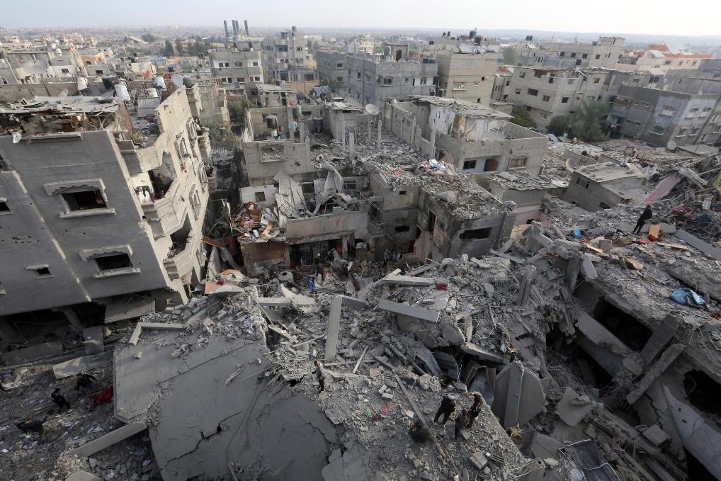 這是12月7日在加沙地帶中部努賽賴特難民營拍攝的遭以軍轟炸后的建筑廢墟。新華社發(fā)(里澤克·阿卜杜勒賈瓦德攝)