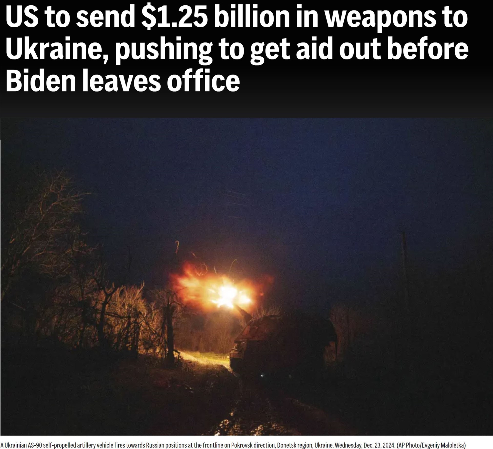 美聯(lián)社28日援引多名匿名官員的話(huà)報(bào)道稱(chēng),拜登政府計(jì)劃在明年1月卸任前再向?yàn)蹩颂m提供12.5億美元的新一輪軍事援助,其中包括用于“國(guó)家先進(jìn)地空導(dǎo)彈系統(tǒng)”和“鷹”式防空導(dǎo)彈系統(tǒng)的彈藥、“毒刺”防空導(dǎo)彈以及155毫米和105毫米口徑火炮炮彈等。