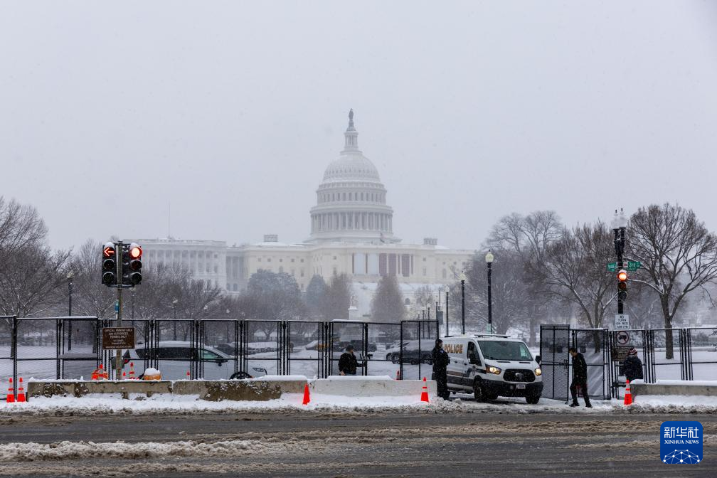 6日當(dāng)天,美國國會大廈周圍被高大的隔離欄環(huán)繞,安保措施顯著加強(qiáng)。