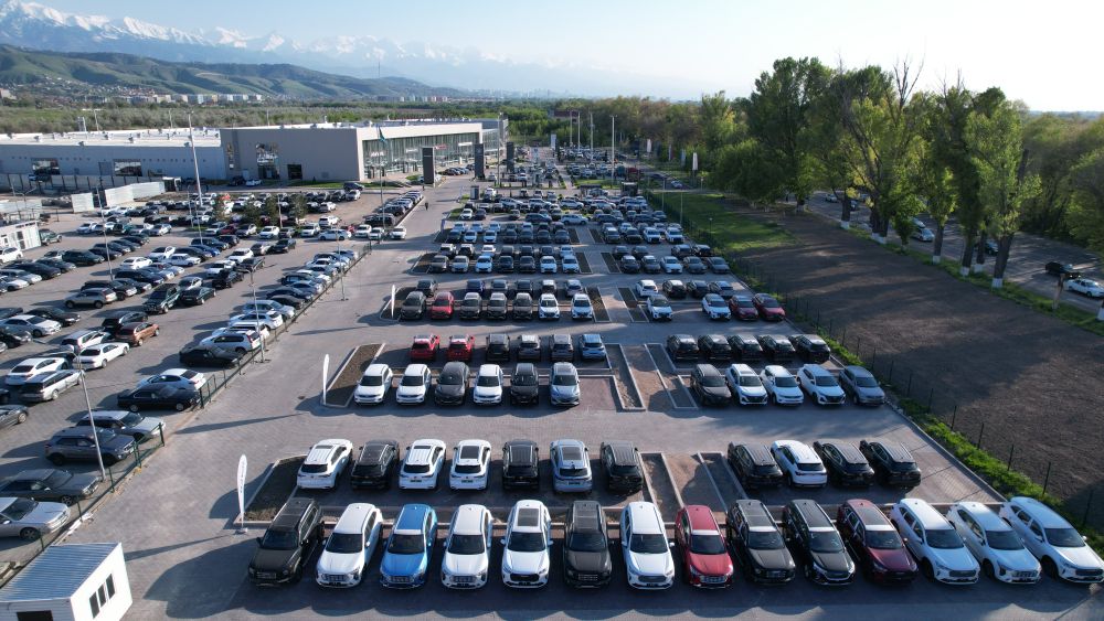2023年5月5日,汽車停放在哈薩克斯坦阿拉木圖一家大型二手車交易市場(無人機(jī)照片)。新華社發(fā)(奧斯帕諾夫攝)