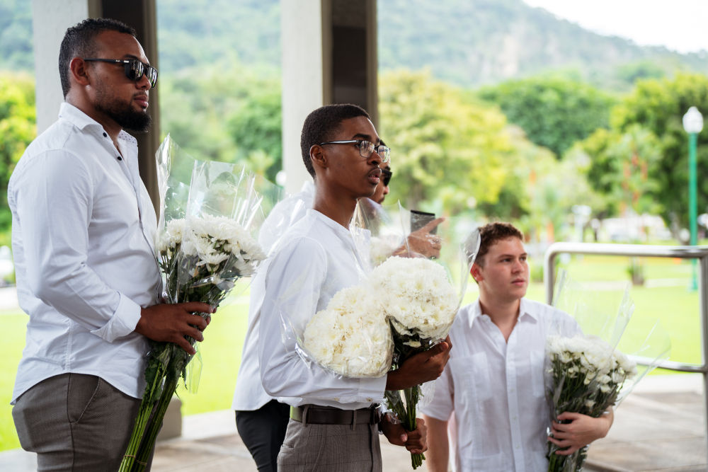 1月9日,巴拿馬舉行“護(hù)旗運動”61周年紀(jì)念活動。這是當(dāng)日在首都巴拿馬城“和平花園”公墓拍攝的花圈。新華社記者許詠政攝