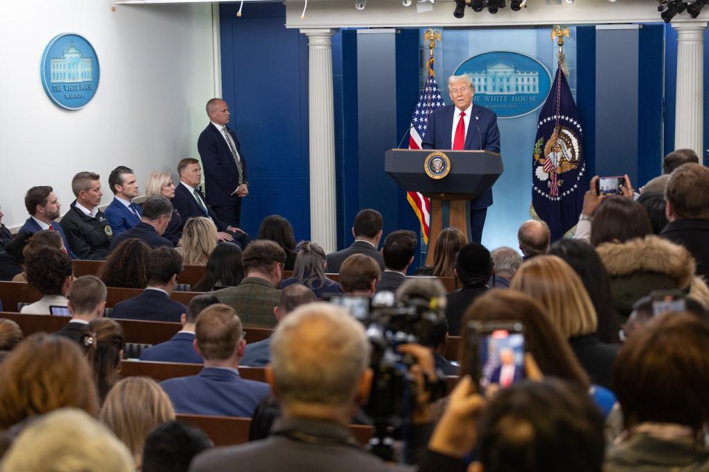 1月30日,美國總統(tǒng)特朗普在首都華盛頓的白宮出席新聞發(fā)布會。新華社記者胡友松攝