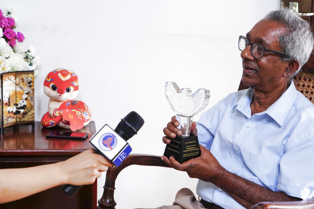 1月30日,在斯里蘭卡首都科倫坡,斯里蘭卡中國協(xié)會主席吉尼斯·德席爾瓦接受新華社記者采訪。