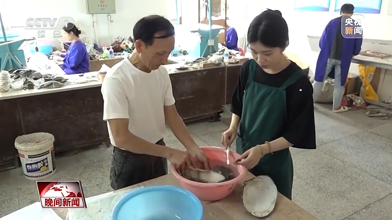 在北海貝雕博物館的工作坊,七十歲的林師傅帶著幾位二十來(lái)歲的徒弟,一步步教授制作要點(diǎn)。他希望這份手藝能夠一代代傳承下去。
