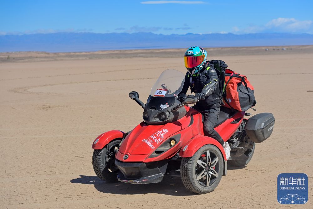 在新疆克拉瑪依市烏爾禾區(qū),車友在無人區(qū)體驗(yàn)越野騎行(5月2日攝)。
