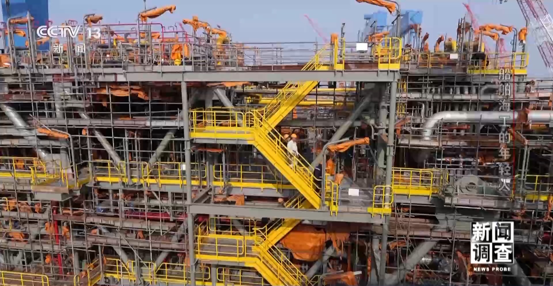 孫博文是啟東中遠(yuǎn)海運(yùn)海洋工程有限公司科技創(chuàng)新室的負(fù)責(zé)人,他帶記者登上了一個正在地面建設(shè)還未吊裝到平臺上的模塊。
