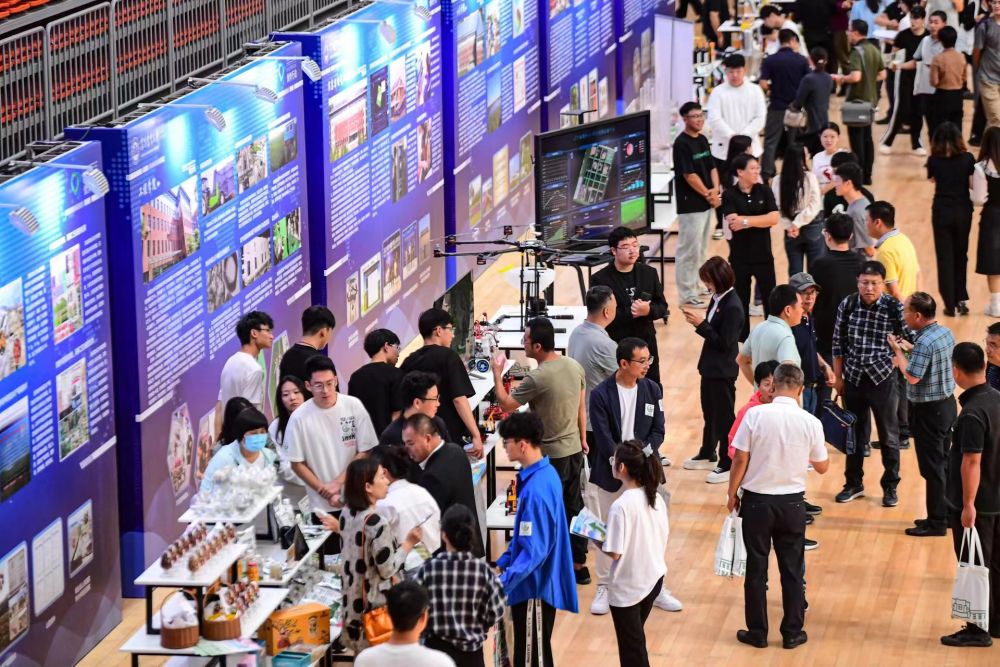 在沈陽市沈陽農(nóng)業(yè)大學(xué)禾豐體育館舉辦的遼寧省高??萍汲晒D(zhuǎn)化對(duì)接大會(huì)現(xiàn)場(chǎng)(2023年9月攝)。新華社發(fā)