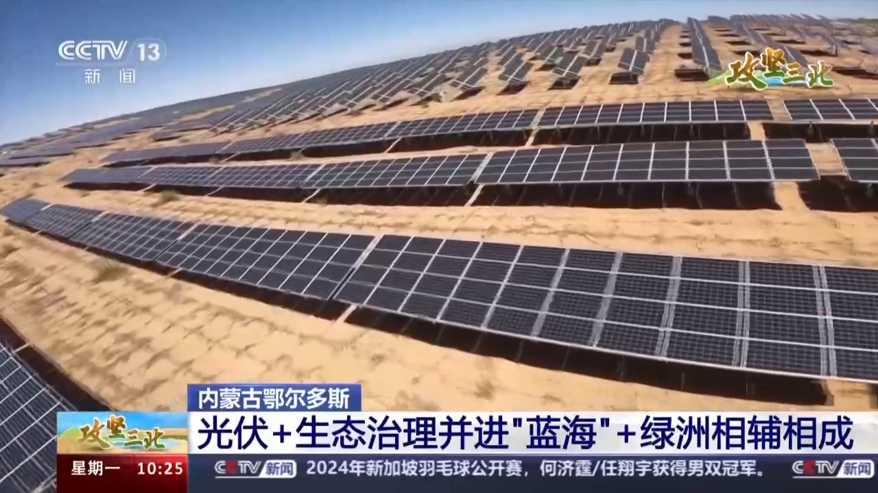總臺(tái)記者 李欣蔓:此時(shí)此刻,我就在庫布其沙漠的西側(cè)腹地。拿我現(xiàn)在所在的杭錦旗朔方新能源大基地來說,這里正在探索建設(shè)的就是當(dāng)下最新的光伏治沙模式。說到光伏發(fā)電,我們已經(jīng)很熟悉了,那光伏治沙怎么治?今天我們就在現(xiàn)場(chǎng)找一下答案。