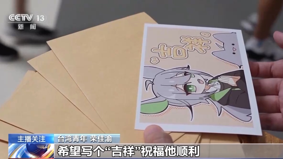臺(tái)灣青年 榮佳渝:他跟我在介紹一些瓷器之類的,可以源源不斷在那邊講,我就覺得好厲害,當(dāng)然也會(huì)希望繼續(xù)跟他交流,因?yàn)榭ㄆ潜容^有心意的東西,我就想自己手畫交給對(duì)方,寫個(gè)“吉祥”祝福他順利。