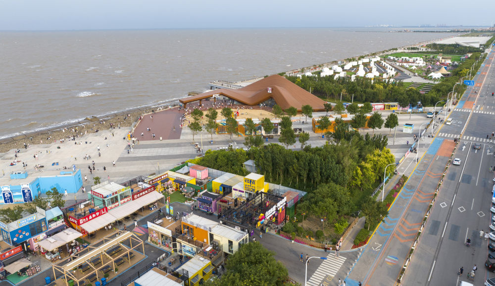 圖為6月29日拍攝的天津市濱海新區(qū)東疆親海公園一景(無人機照片)。新華社記者 趙子碩 攝