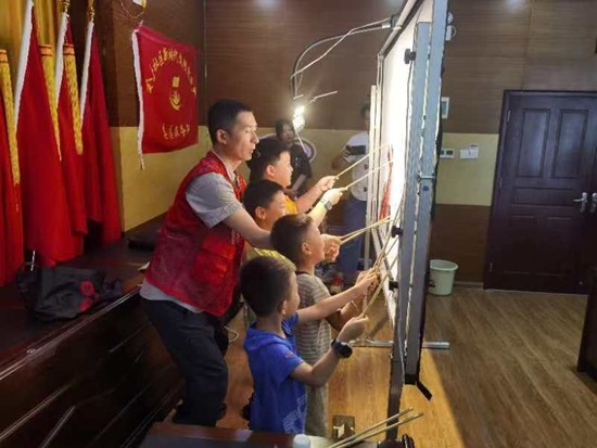 紙影戲(影偶制作技藝)非遺傳承人吳淵帶領(lǐng)小朋友體驗(yàn)紙影戲。受訪者供圖