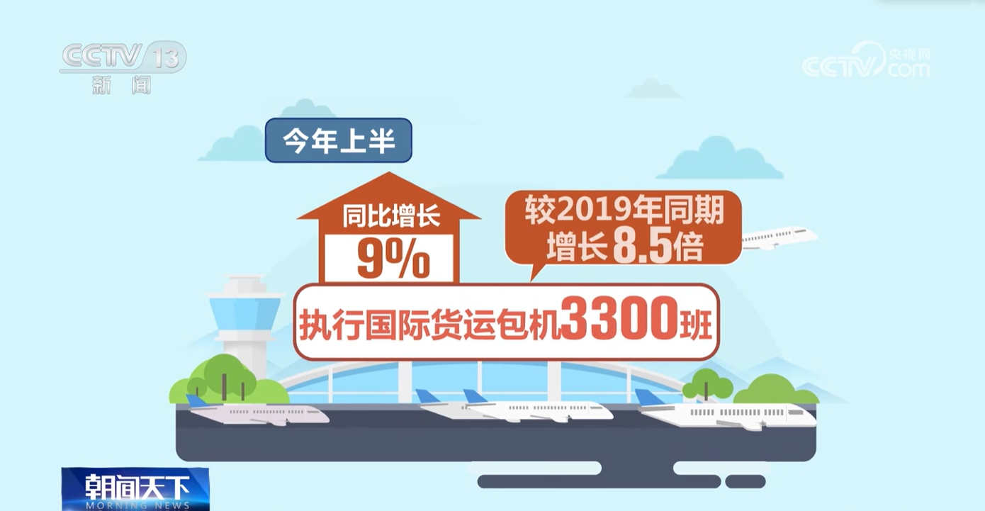 為適應(yīng)跨境電商、電動(dòng)汽車、鋰電池和光伏產(chǎn)品“新三樣”等貨物運(yùn)輸?shù)臅r(shí)效性、靈活性要求,國際貨運(yùn)不定期航班量也保持增長的趨勢(shì)。今年上半年執(zhí)行國際貨運(yùn)包機(jī)3300班,同比增長9%,較2019年同期增長8.5倍。