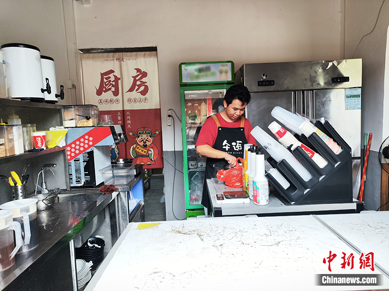小伙叫蘭嘉祥,1999年生人,他的店鋪在今年5月1日開(kāi)張,是受到政府扶持的返鄉(xiāng)創(chuàng)業(yè)項(xiàng)目之一。村里為他提供了租金優(yōu)惠,第一年免租,以鼓勵(lì)他在老街開(kāi)店。與村干部溝通后,蘭嘉祥決定將店鋪定位于同時(shí)滿足本地人和游客的需求,“游客群體傾向于購(gòu)買(mǎi)紅糖產(chǎn)品,而村民則更偏愛(ài)奶茶飲品?!?/p>