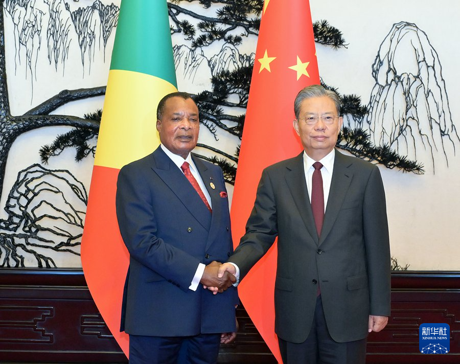 9月6日,全國人大常委會委員長趙樂際在北京會見來華出席中非合作論壇北京峰會并進行國事訪問的剛果(布)總統(tǒng)薩蘇。新華社記者 高潔 攝
