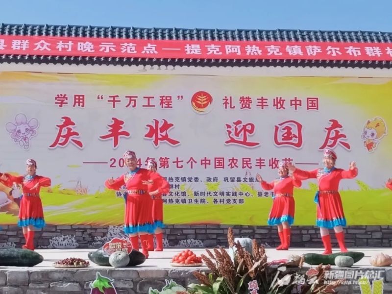 9月20日,伊犁哈薩克自治州鞏留縣提克阿熱克鎮(zhèn)舉辦“慶豐收·迎國慶·賞非遺”群眾文藝展演活動(dòng),圖為演出現(xiàn)場。杜麗娜攝