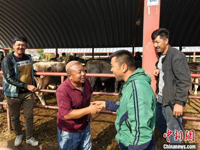 說話間,不時有其他買家、賣家以及“牛羊經(jīng)紀人”過來與依力夏提·阿不都熱依木打招呼。他介紹道,黃公巴扎有維吾爾族、回族、哈薩克族、漢族等,大家相處融洽。他還邀請一個朋友向記者演示“拍手交易”——雙方用力拍手并握手,用捏手代替口頭報價。