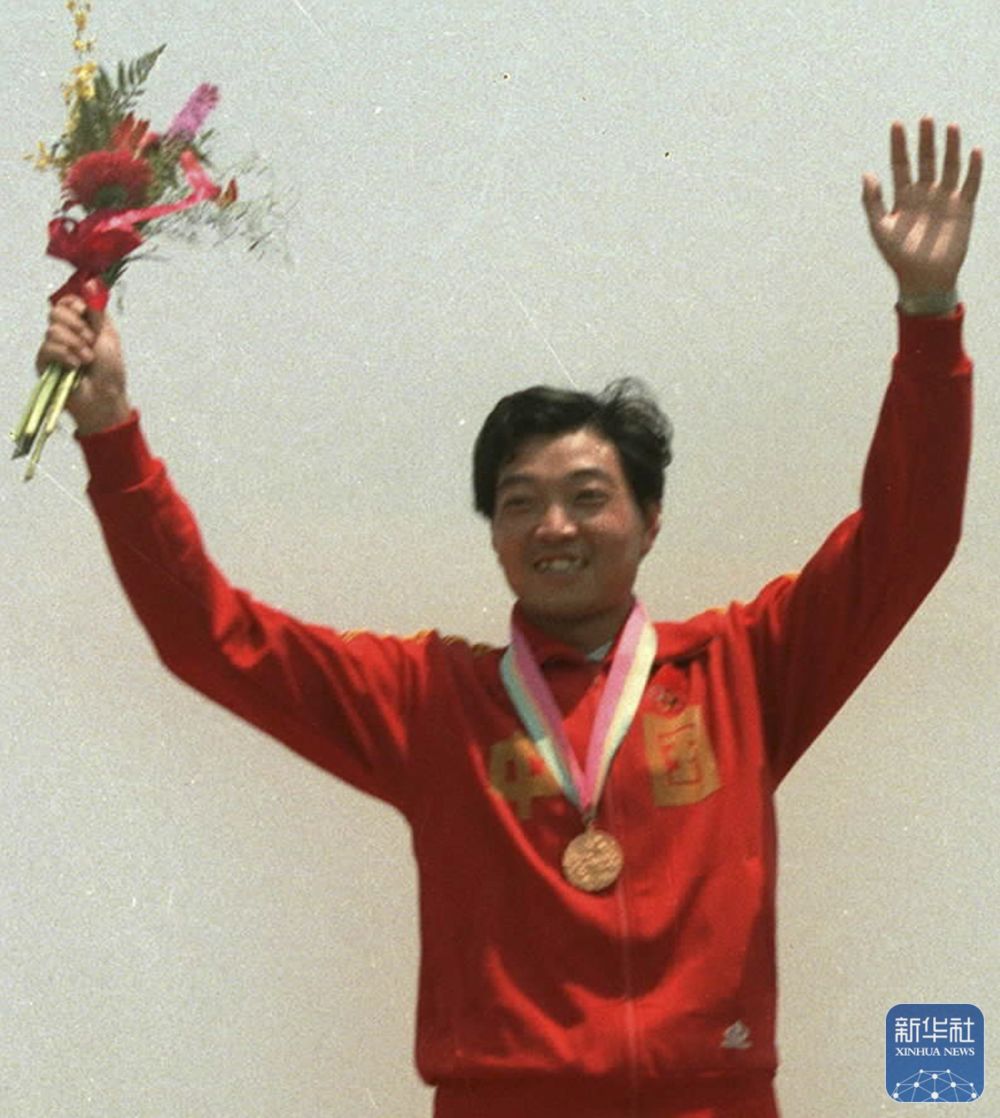 1984年洛杉磯奧運(yùn)會(huì)上,許海峰在獲得男子自選手槍項(xiàng)目冠軍后領(lǐng)獎(jiǎng)(資料照片)。 新華社發(fā)
