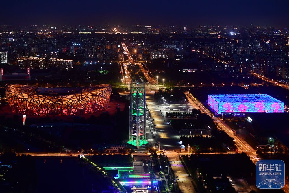 這是2022年6月23日拍攝的國(guó)家體育場(chǎng)(左)與國(guó)家游泳中心夜景。作為“雙奧之城”的標(biāo)志性場(chǎng)館群“冰絲帶”、“鳥(niǎo)巢”、“冰立方”聯(lián)動(dòng)亮燈,共同傳遞奧林匹克精神,號(hào)召民眾用運(yùn)動(dòng)點(diǎn)亮健康生活,創(chuàng)造美好未來(lái)。 新華社記者 張晨霖 攝