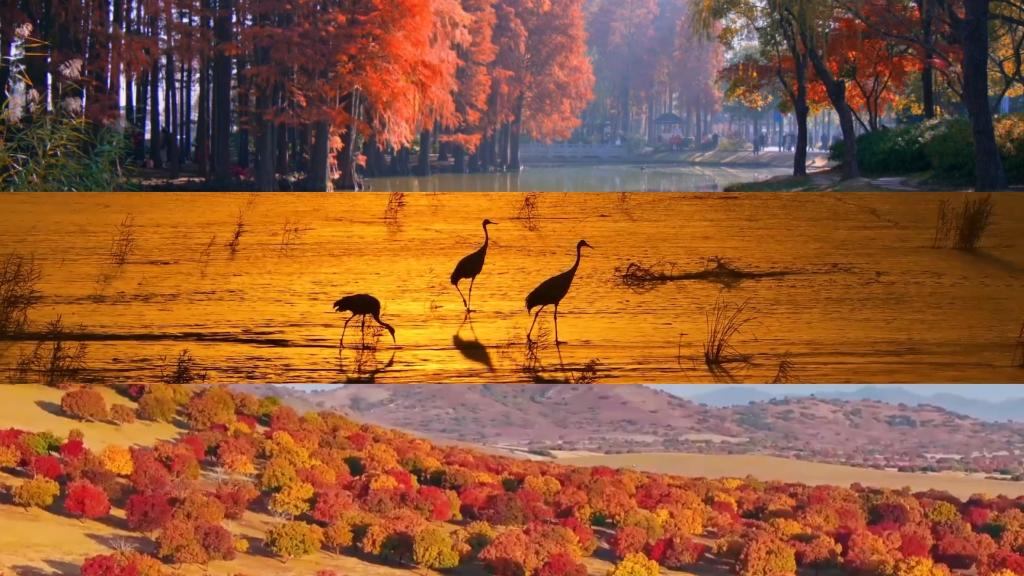 江蘇黿頭渚秋意漸濃,與太湖相映成趣;山東黃河入??冢扇壶B兒在濕地覓食、嬉戲;山西太行山色彩繽紛,秋色宜人。