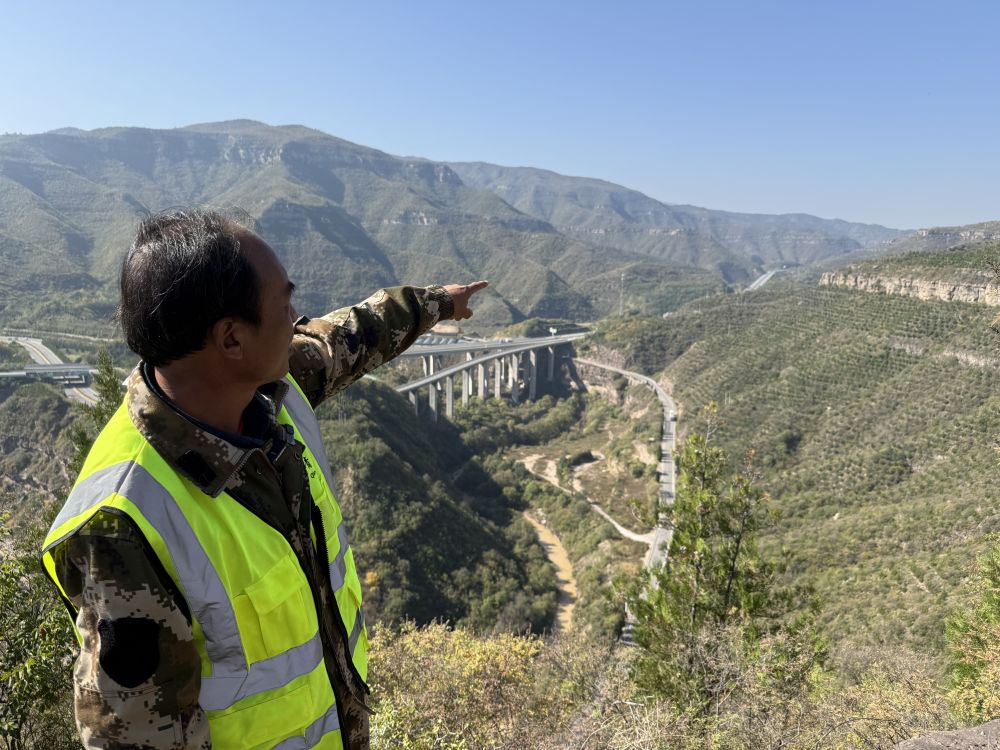 “懸崖造林隊(duì)”隊(duì)長王永紅介紹種樹情況。